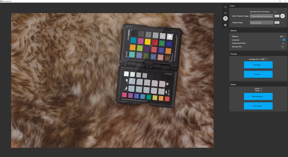 - You can either save the reference image, or save a target image (without colorchecker, but with same exposure settings)